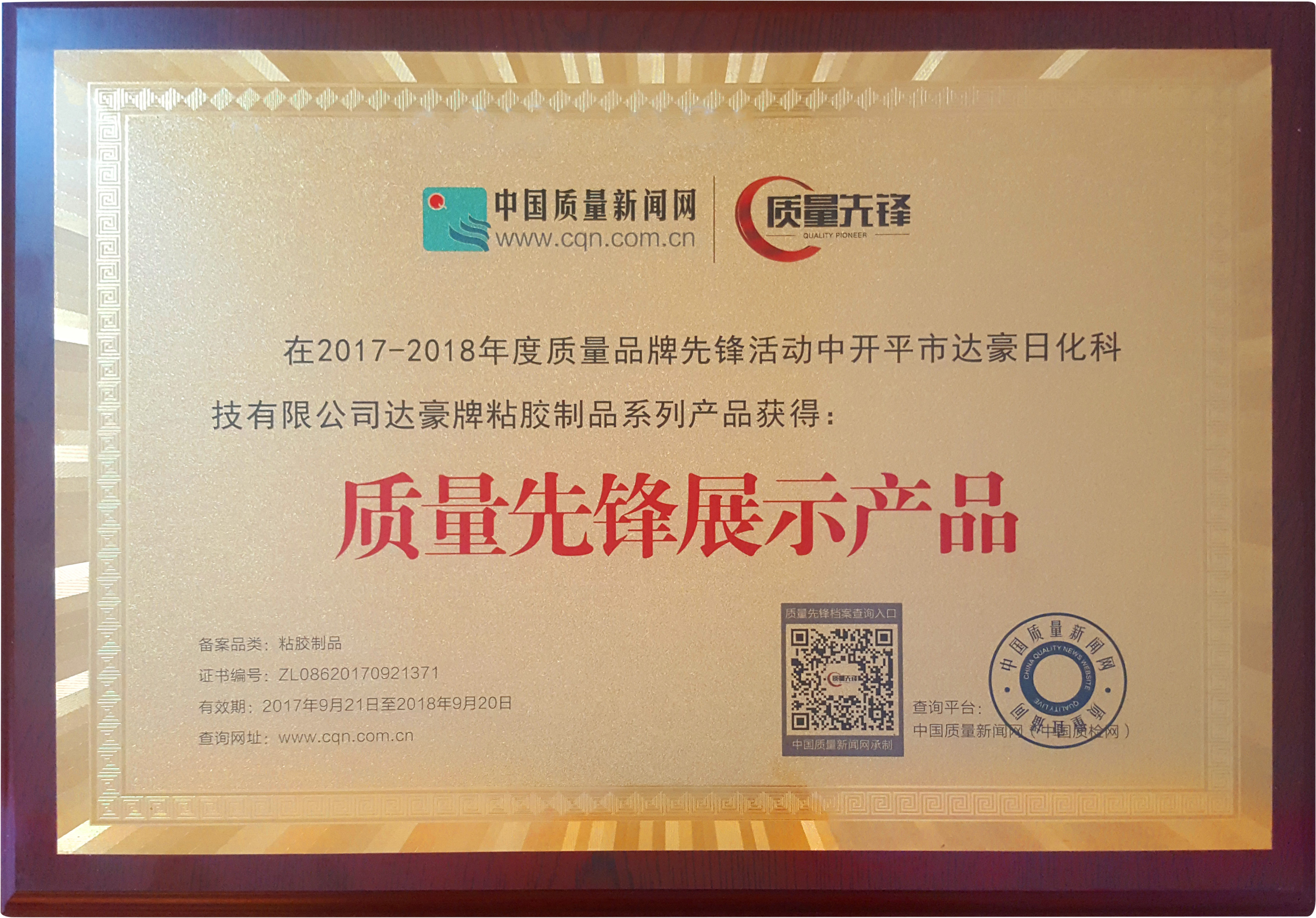 2017年 粘胶制品荣获质量先锋展示产品