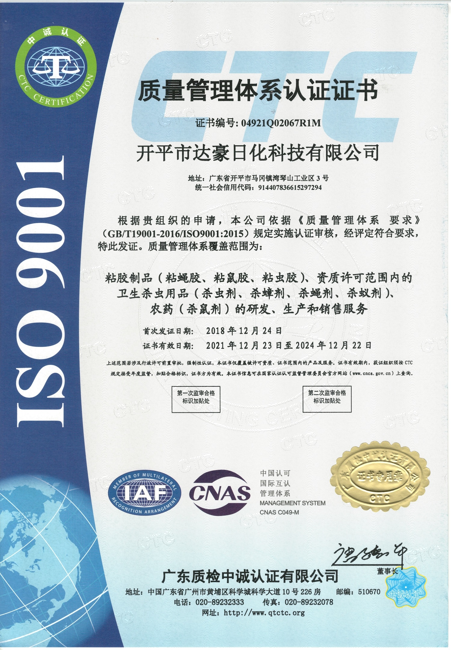 2018年 通过质量管理体系认证