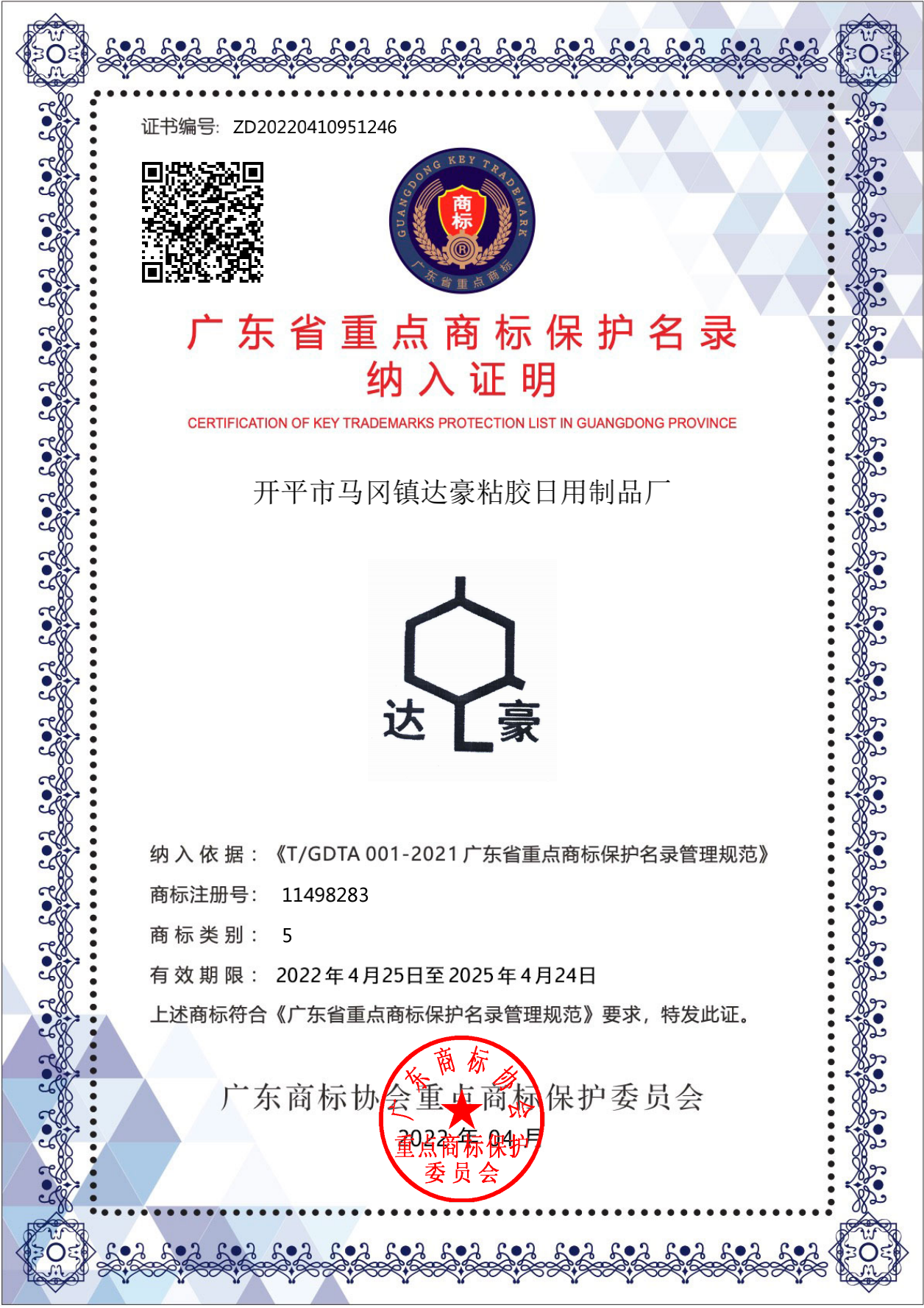 2021年 入选《广东省重点商标保护名录》