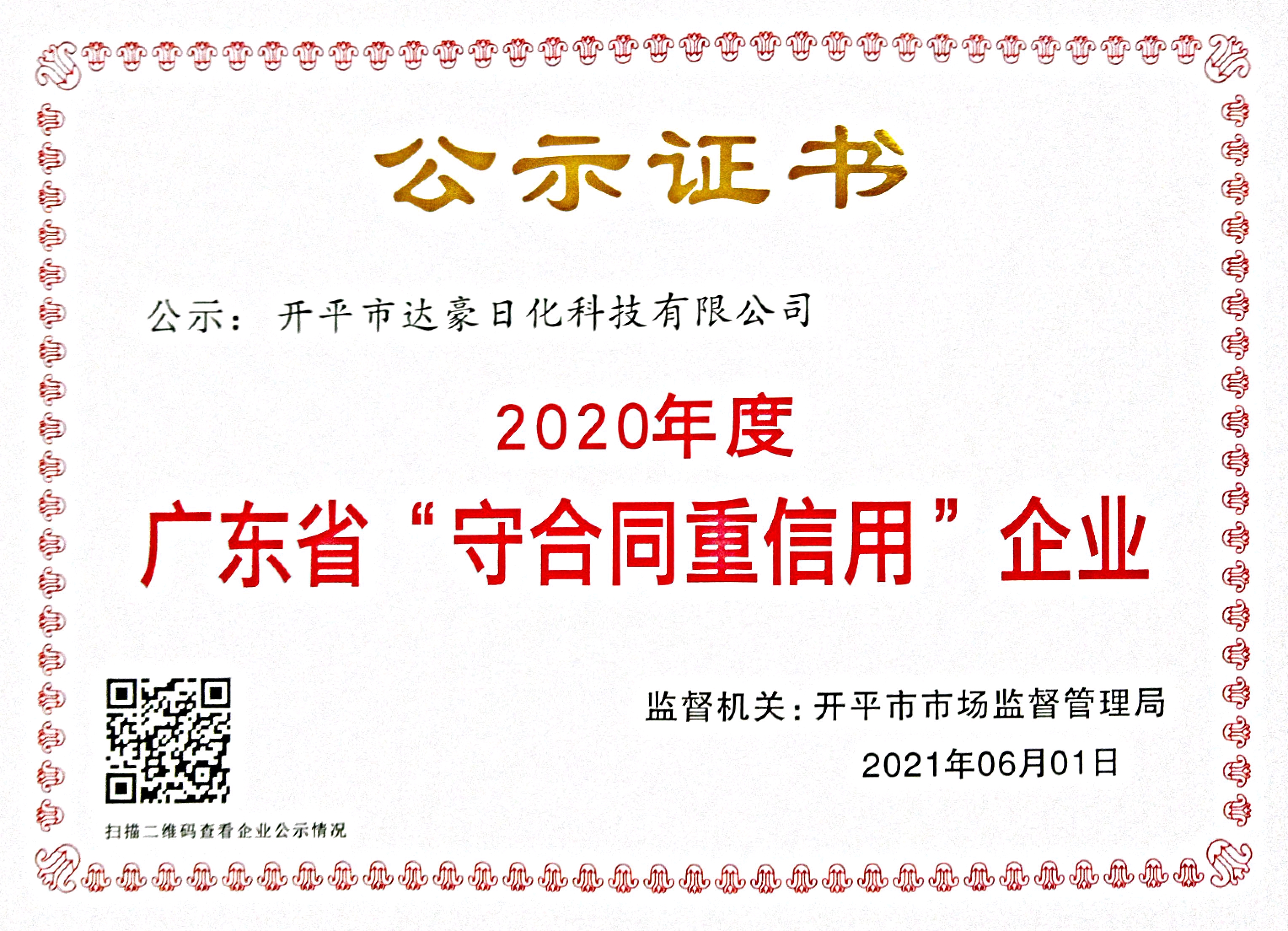2020年 荣获广东省守合同重信用企业